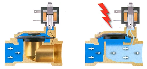 Las electroválvulas pueden ser normalmente cerradas (NC) o normalmente abiertas (NO). En una electroválvula NC, el émbolo se separa del asiento cuando se activa, permitiendo el paso del fluido. En una electroválvula NO, el émbolo es empujado contra el asiento cuando se activa, bloqueando el flujo de fluido. La válvula solenoide es un tipo de válvula electromagnética que se abre y cierra con el uso de un electroimán. Este tipo de válvula tiene muchas aplicaciones, como la regulación del flujo de agua en grifos e inodoros, así como el control del flujo de aire en cosas como los acondicionadores de aire.